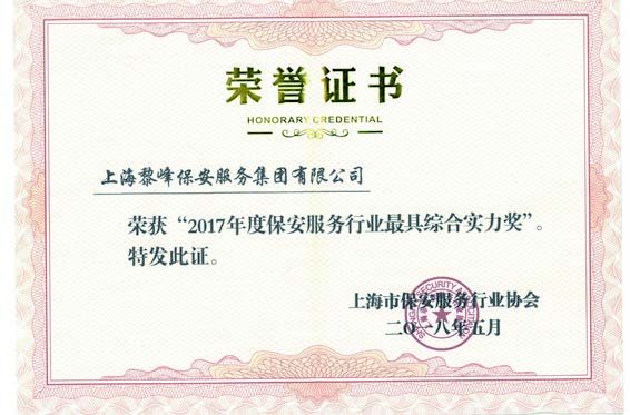 2017年 被上海市公安局評為2016年度保安服務行業業務發(fā)展優(yōu)勝獎